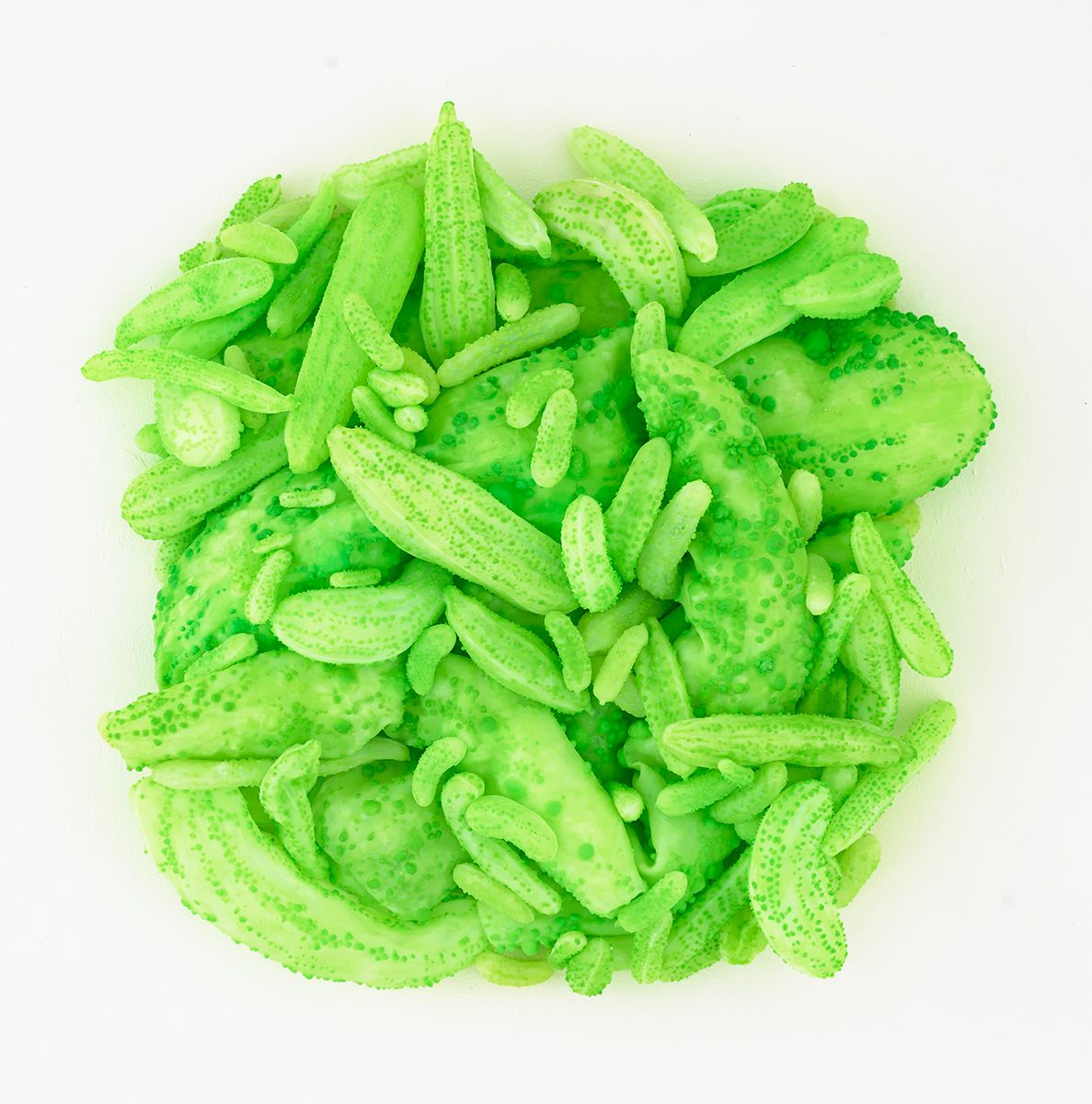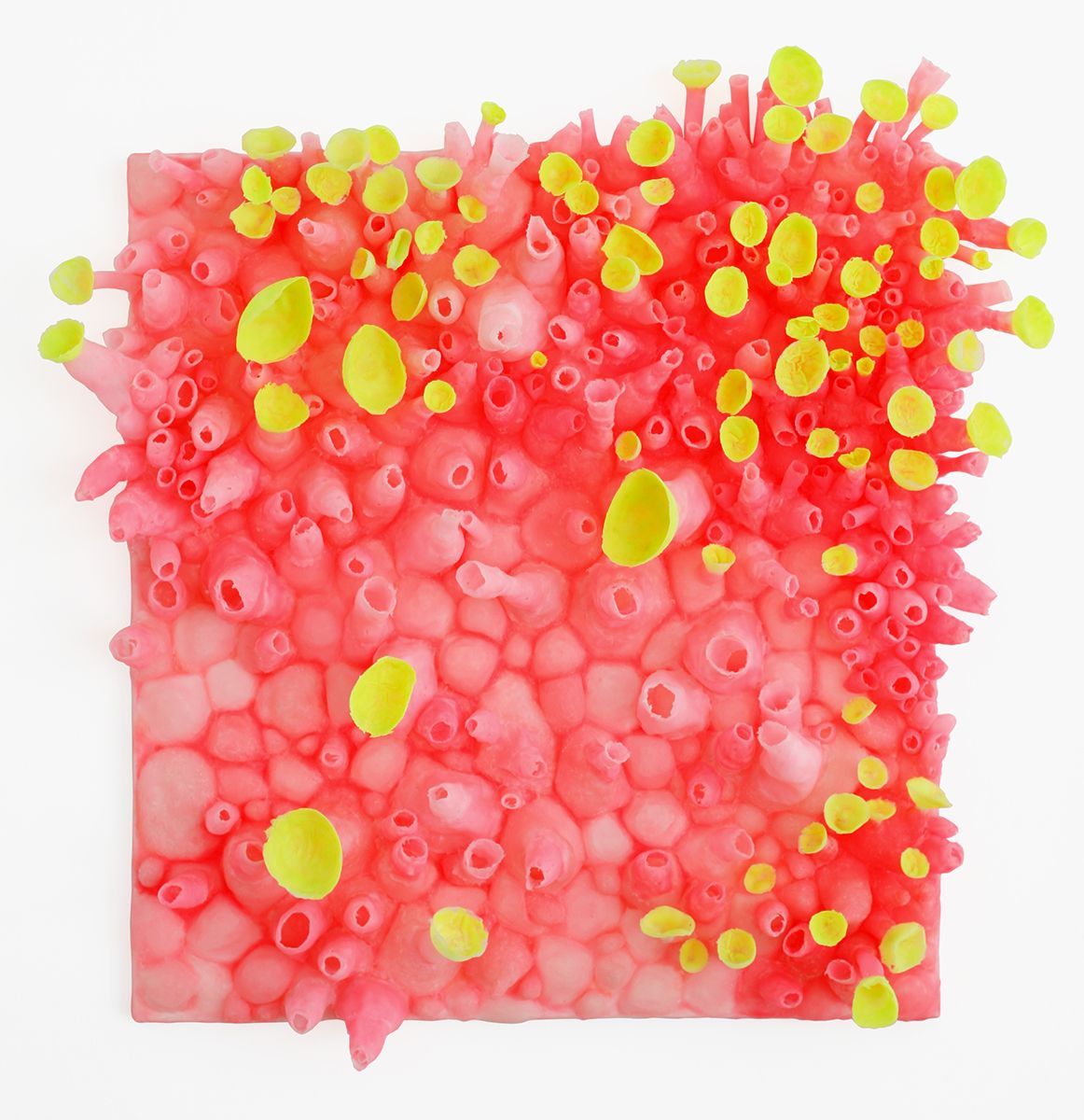 Kunst ist meine Übersetzung von Natureindrücken; meine Bildobjekte scheinen organisch aus dem Bildgrund zu wachsen. Die einzelnen Bestandteile der Werke stammen von Positiv‑ und Negativformen, die ich selbst erstelle. Im Arbeitsprozess verwandle ich auf diese Weise Schritt für Schritt hochwertiges Industrie‑Silikon in organisch anmutende Wandobjekte. Assoziationen an Schwärme, Flechten, Pilze oder farbintensive Meeresgewächse wie Anemonen, Korallen und andere biomorphe Gliederungen faszinieren mich. Fantasievolle Vergrößerungen mikrokosmischer Phänomene bieten unterschiedliche Interpretationsebenen, die die Grenzen von Natürlichkeit und Künstlichkeit immer wieder ausloten. Farben und Formen liegen im Spannungsfeld von Anziehungskraft, Lust und Versuchung bis hin zu überfließender Fülle.