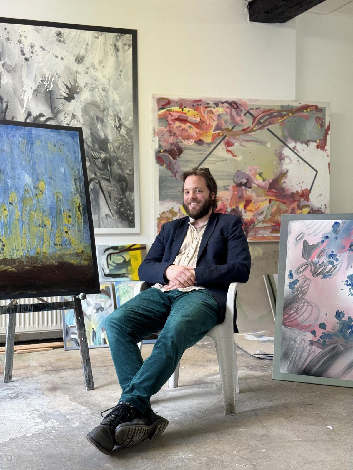In meiner künstlerischen Arbeit beschäftige ich mich mit Kontrasten und Spannungsverhältnissen innerhalb der Malerei. Ich erforsche dualistische Prinzipien und versuche, sie in meinen Bildern zusammenzubringen.